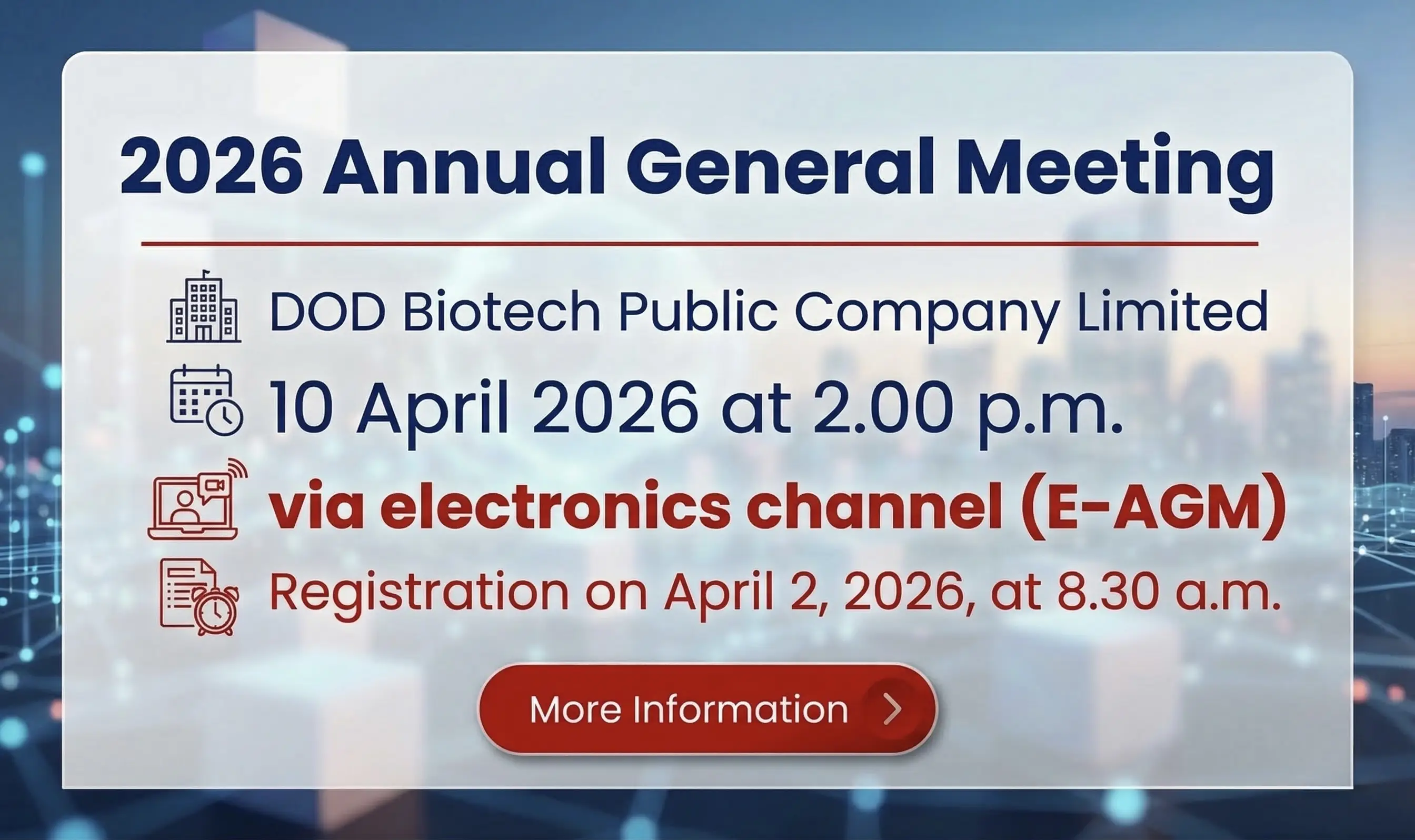 We are committed to being a leader in international quality. DOD Biotech Public Company Limited has moved to the next level of industry standards. Our quality control and production team Consisting of pharmacists and professional engineers. that is fully equipped with decades of experience in the production of pharmaceutical products According to the highest international industry standards